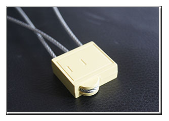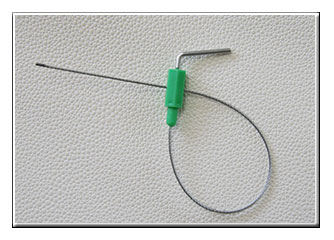 steel rod or heavy-gauge wire of various diameters, which is inserted through the locking fixture and twisted around itself by use of a special tool