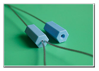 EXAMPLE On a one-piece seal, the locking or seizing mechanism is permanently attached to one end of the cable. A two-piece cable seal has a separate locking mechanism which slips onto the cable or prefabricated cable end.
